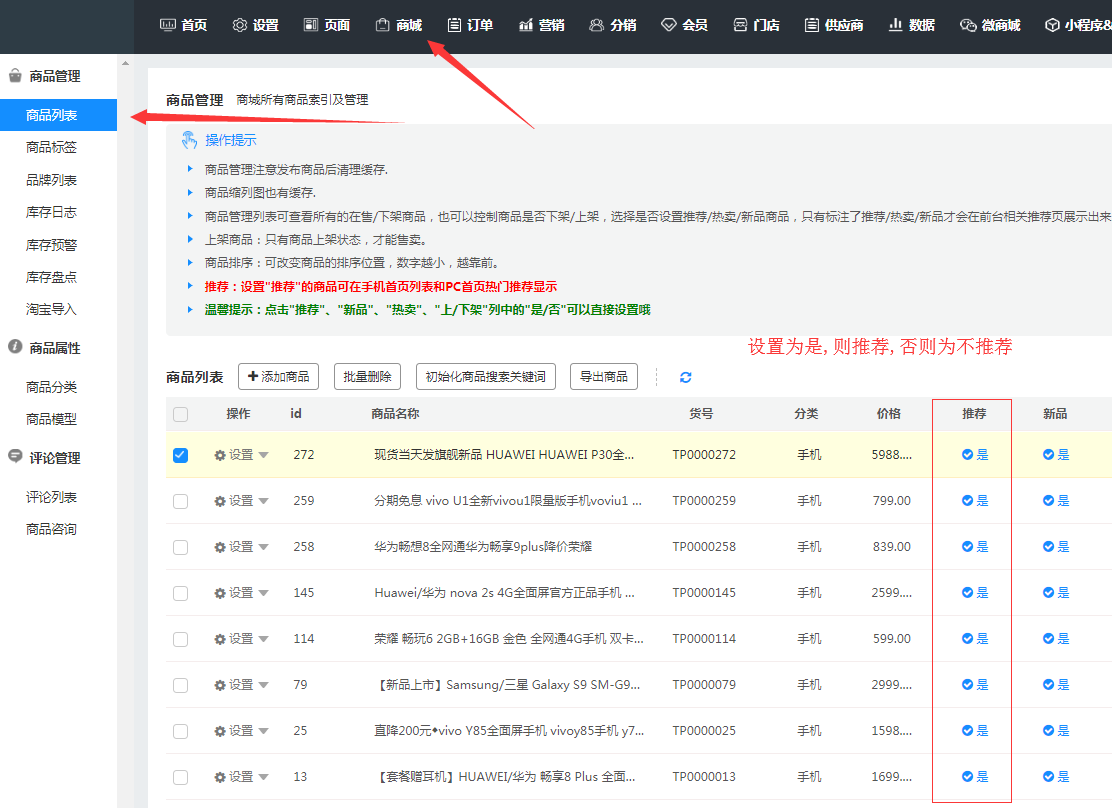当我们有了商品之后,我们该怎么去增加它的销售量呢?接下来我们可以设置商品的热门推荐