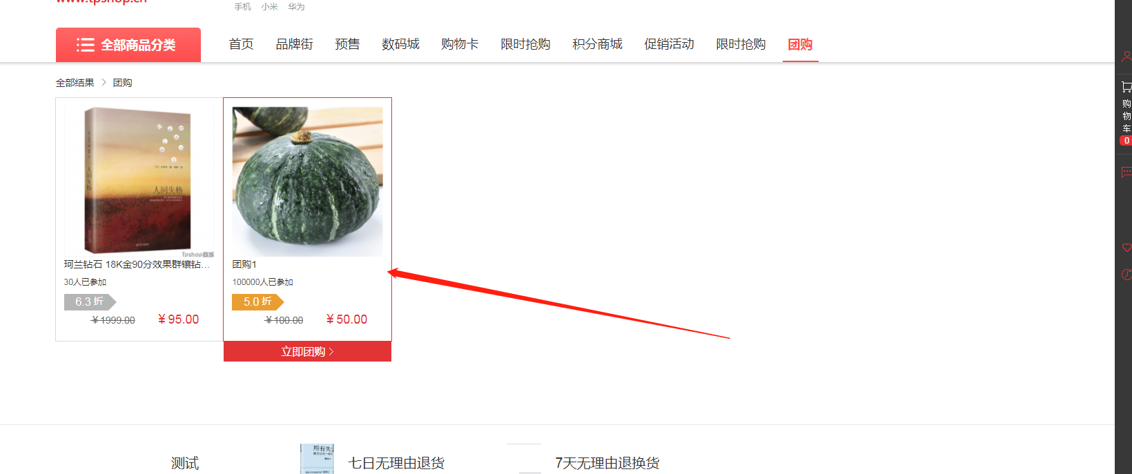 团购活动前台展示: