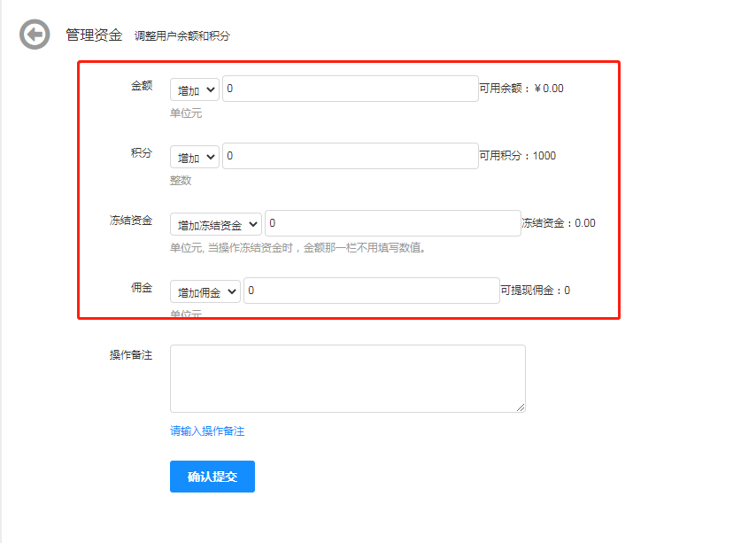 假如需要测试,使用余额支付,或者需要给自己账户加资金在一下操作里面添加