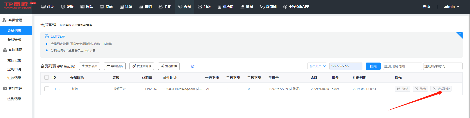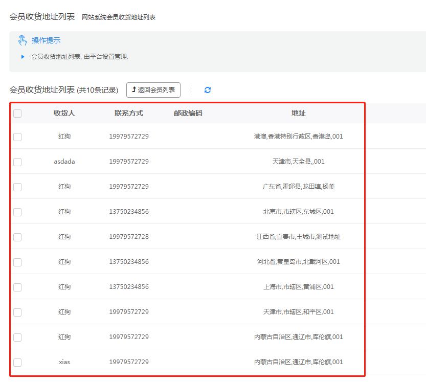 如果想要知道该会员有哪些收获地址怎么办呢?
