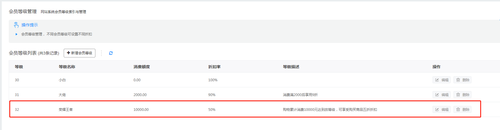 点击【新增会员等级】按钮,设置