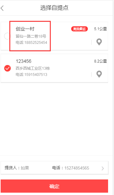 选择自提点--自提点列表页: