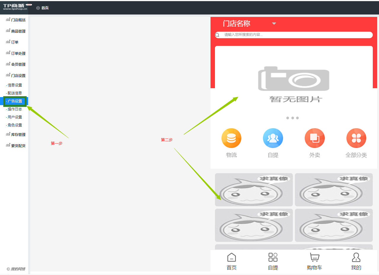 (5.3)广告设置:可以对前台门店首页预留的海报位置去上传海报图,海报图里可以设置跳转链接;