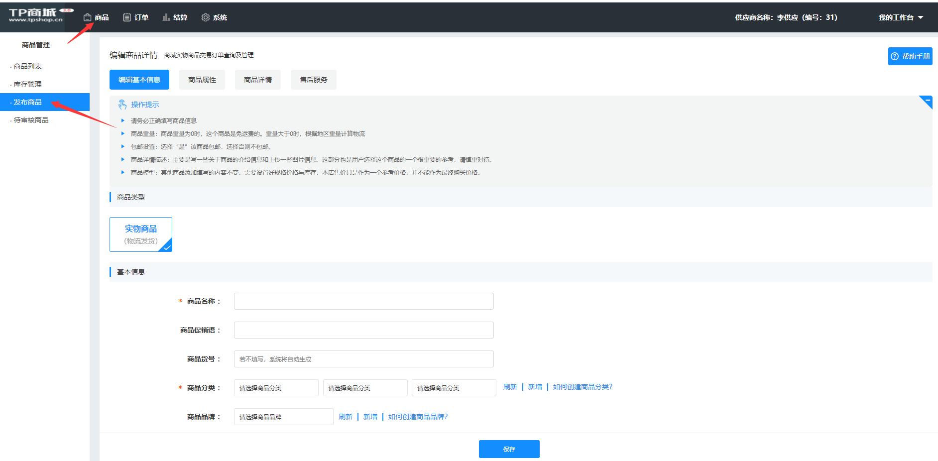 在添加商品的时候,需要将商品与它对应的供应商关联起来,如果该商品没有供应商,也可以选择不关联。