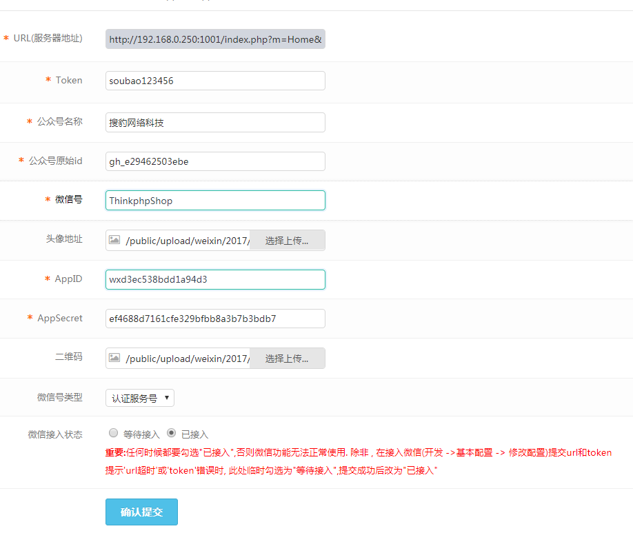 tpshop平台路径:分销--微信接入--公众号配置