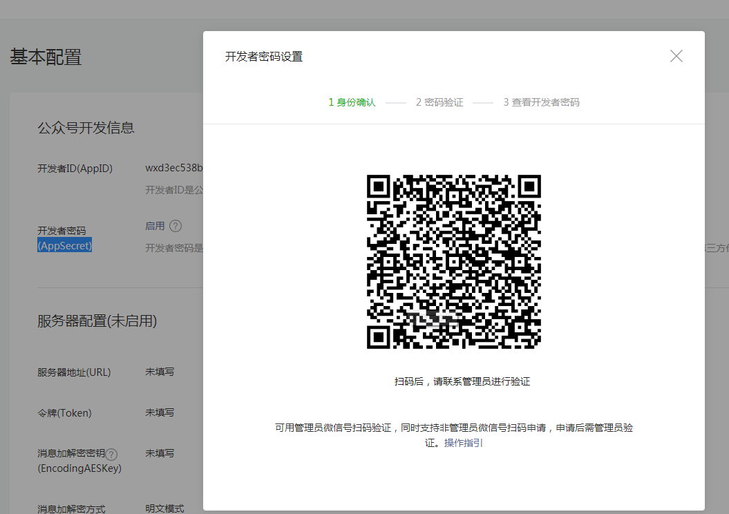 填写公众号登录密码和验证码后,获取到AppSecre。
