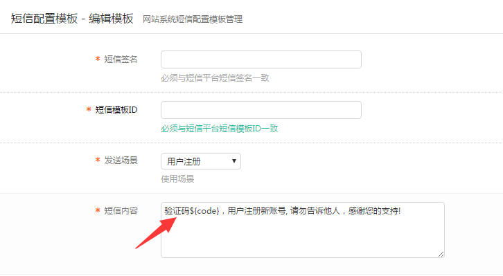 3. 如果需要新增变变量, 除了在此处编辑短信内容之外,在