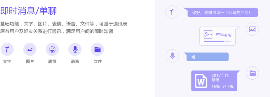 一个高效便捷的工作系统,支持推送、多终端登录、历史消息、数据统计,可扩展位置分享、已读标记、输入中...让客服工作游刃有余